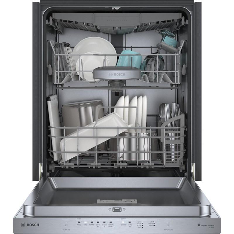 This Bosch 500 Series 24-inch dishwasher features 5 wash cycles, Home Connect™, and a cutlery tray.