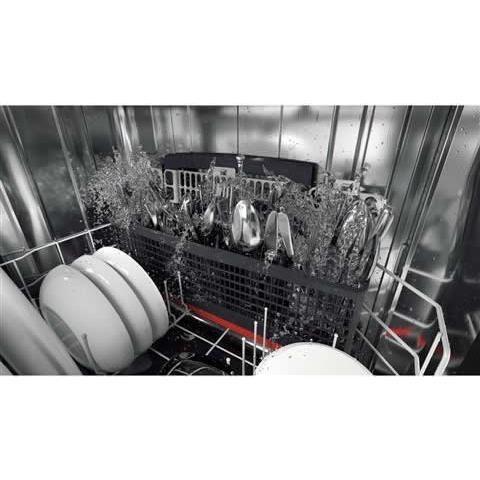 A system of deep clean silverware jets blasts the silverware basket from the bottom up, removing all stuck-on foods and providing sparkling results.