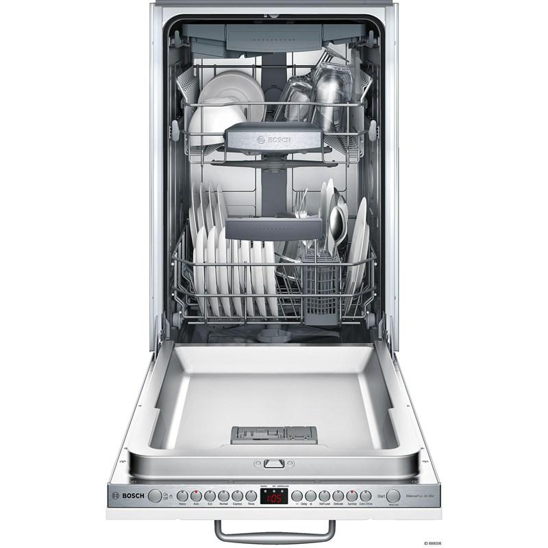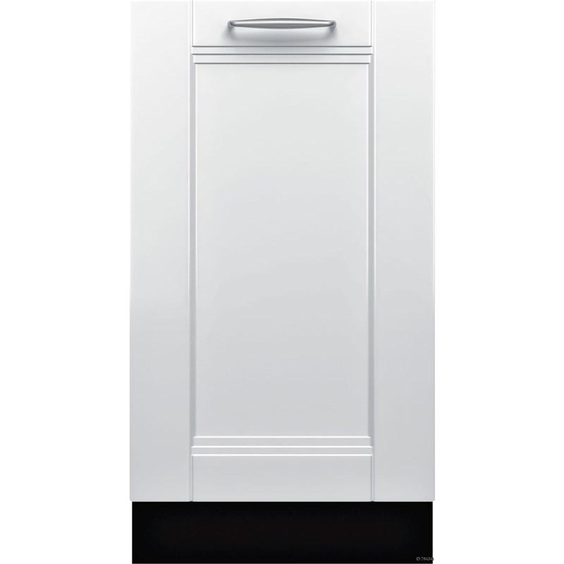 This 18" Bosch panel ready 800 Series dishwasher features InfoLight®, ActiveTab™ Tray, RackMatic® system and can accommodate up to 10 place settings. Image shown with panel (Sold separately).