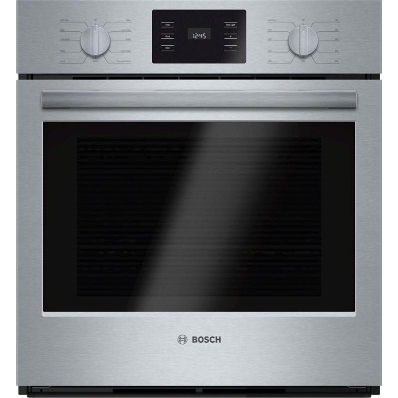 This Bosch self-cleaning single electric wall oven features heavy-duty metal knobs for a premium looks and feel. It also offers a convenient kitchen timer and an oven light to better monitor cooking progress.