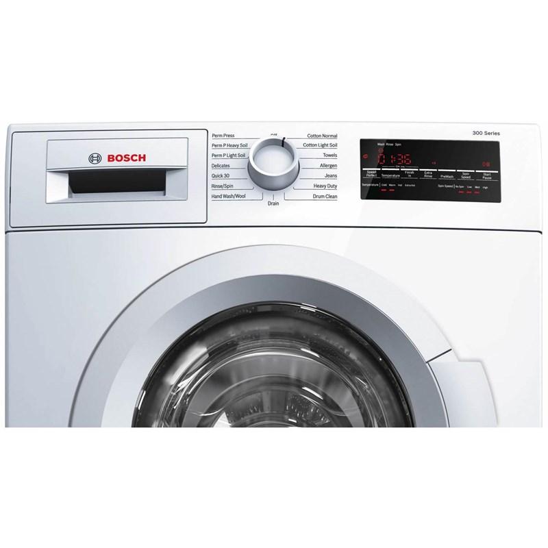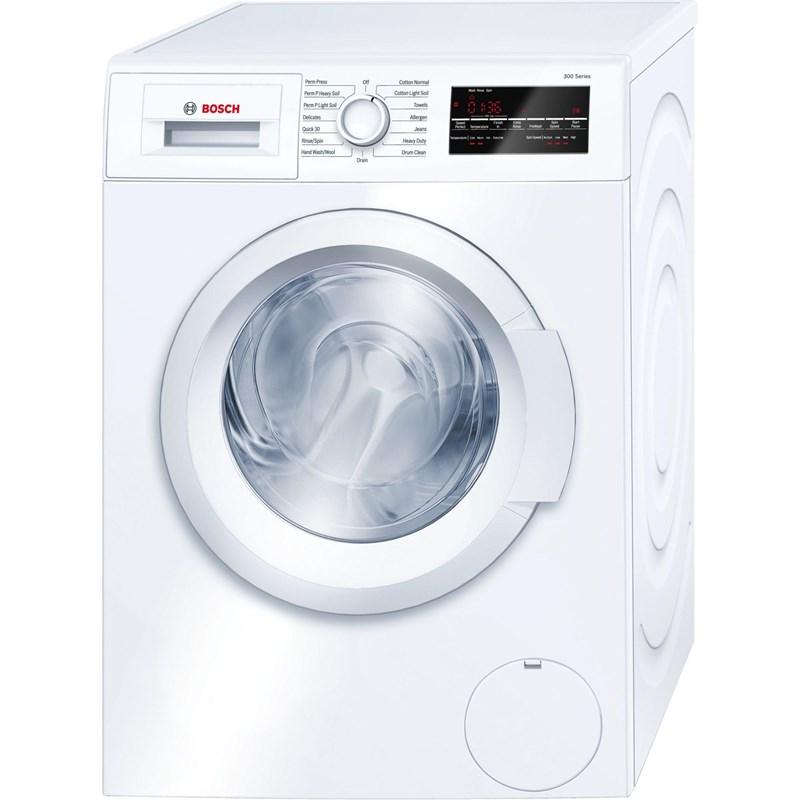 This Bosch 300 Series high-efficiency front-load washer is ENERGY STAR qualified. It features SpeedPerfect™ that provides up to 40% faster washing time and can wash up to 16 towels in 1 load. It also offers anti-vibration circular side walls that reduce vibration, ActiveWater® technology and 15 wash cycles.
