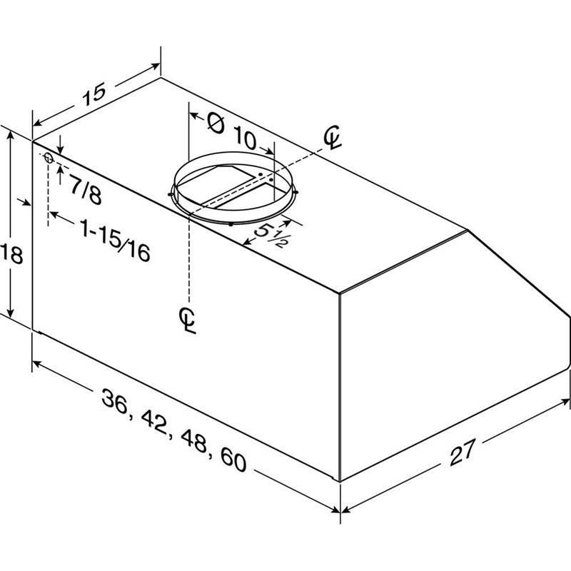 • Bright halogen lighting (2 x 50 watt GU10 for 36" hood, 3 x 50 watt GU10 for 48" hood) (bulbs not included).