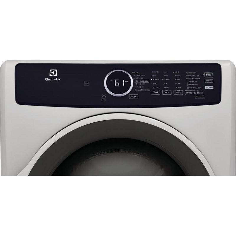 This Electrolux electric dryer features 7 dry programs, a control lock, delay start time and a total capacity of 8.0 cu.ft.