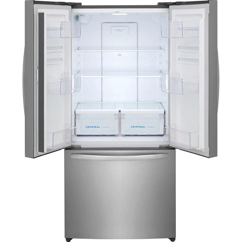 Frigidaire 17.6 cu. ft. counter-depth french door refrigerator with CrispSeal® crispers to keep produce fresher longer, so you waste less and save money. Find a place for all your favorites with the gallon door bin storage, edge-to-edge glass shelves and a 3 tier freezer storage. The EvenTemp® cooling system keeps your food fresh and reduce freezer burn with a variable-speed compressor that reacts quickly to temperature fluctuations and constantly circulates cold air throughout the fresh food and freezer compartments.