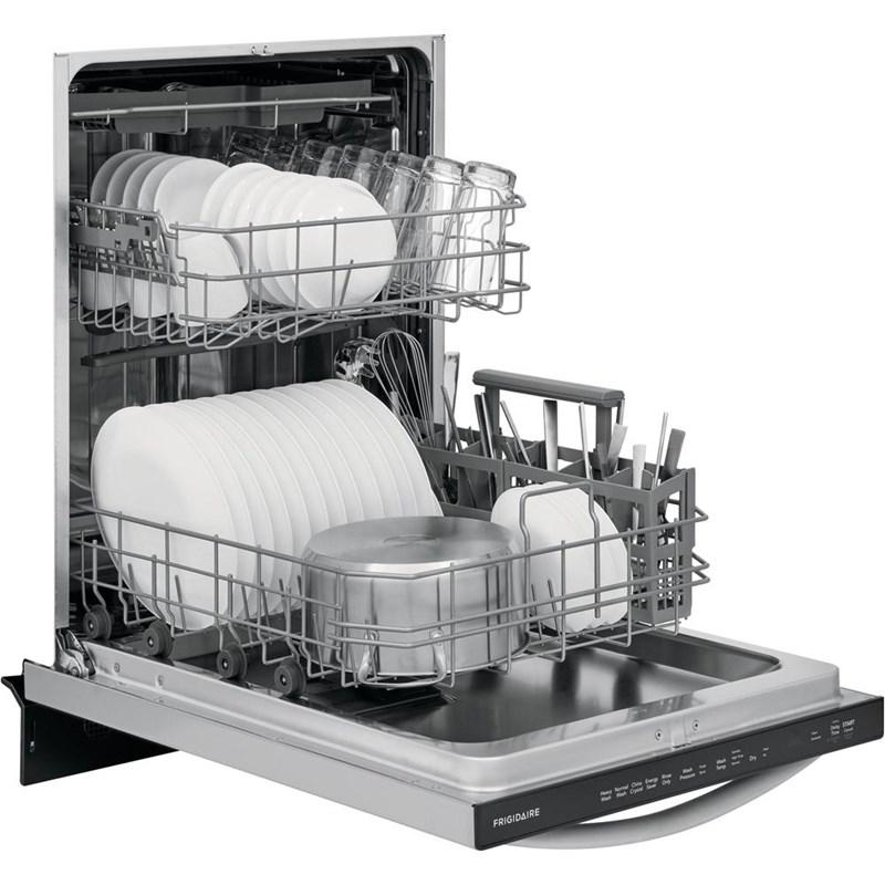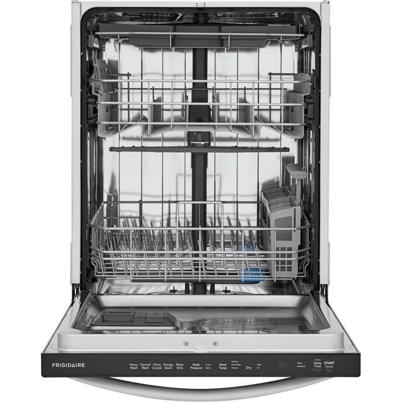 This 24-inch wide Frigidaire dishwasher features 5 wash programs, a smart soil sensor, a 3rd level rack and can accommodate up to 14 place settings.