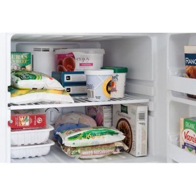 This Frigidaire 12 cu. Ft. Top-freezer apartment-size refrigerator features the Spacewise® adjustable glass shelves easy adjusting shelves up and down to create more space for taller items. Also displays the Store-More™ Gallon door shelf and a full-width freezer rack.