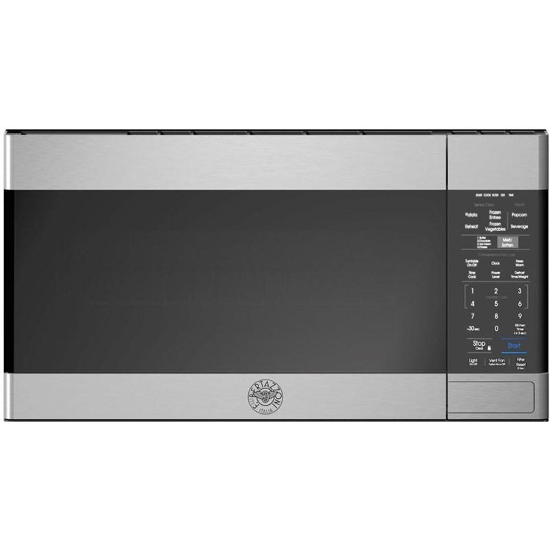 This Bertazzoni over-the-range microwave oven has 1.6 cubic feet capacity and a glass turntable over 13.6" in diameter. The smart touch controls with LED display manage 10 power levels, pre-set cooking modes, timer and sensor controls for reheat and defrost. This over-the-range microwave oven is equipped with a halogen interior light and 2 LED surface lights to provide bright illumination of the cooking surface underneath.