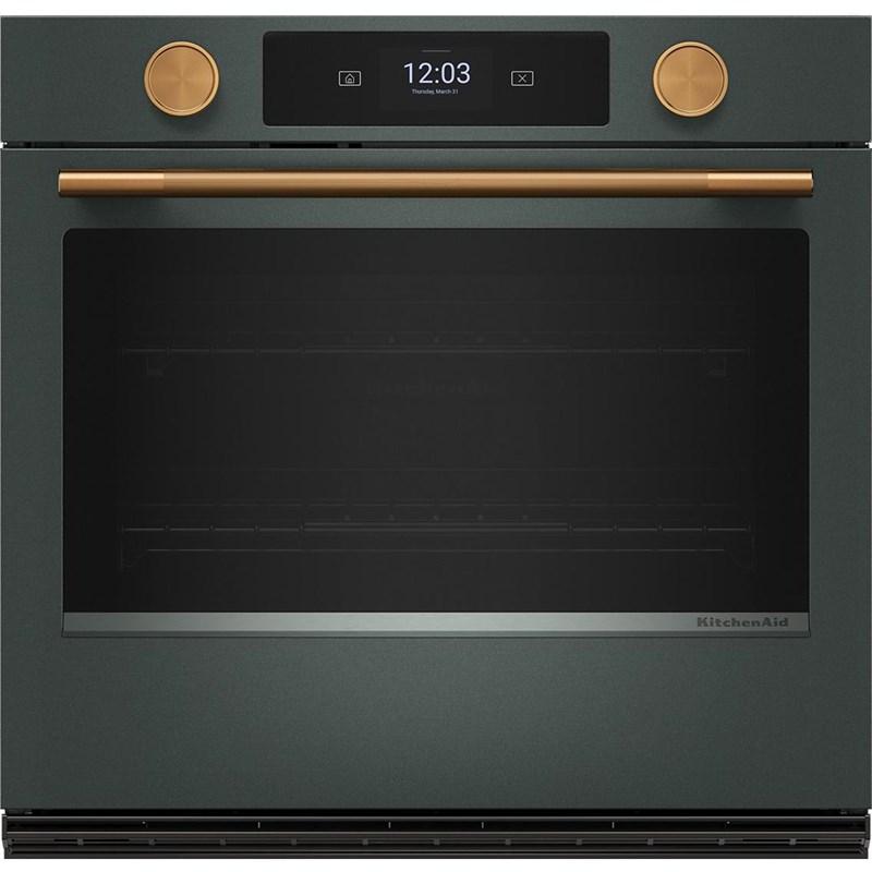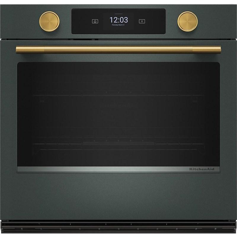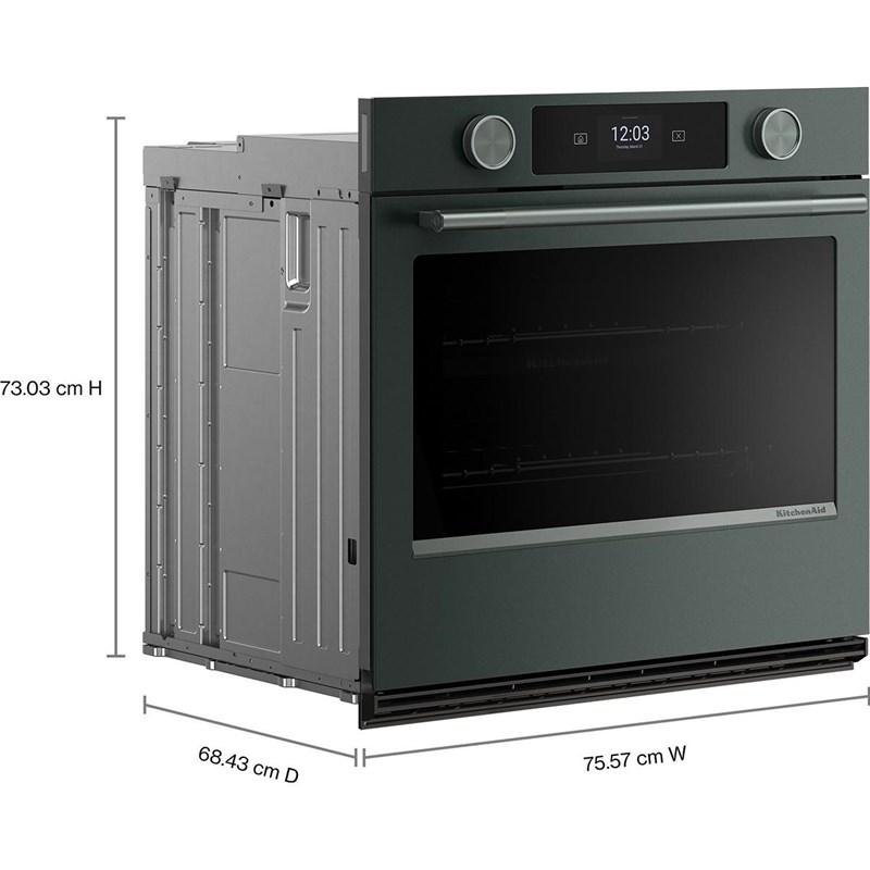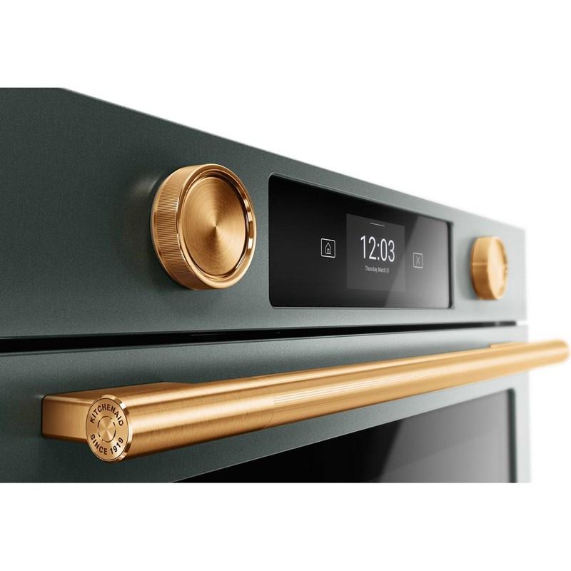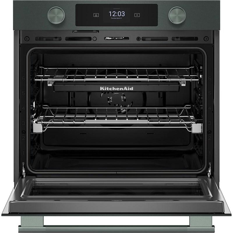 Explore new recipes with built-in tips on this KitchenAid smart wall oven, featuring our Most Precise Even-Heat™ True Convection and Assisted Cooking Modes. LED Touchscreen display and backlit knobs allow for tactile display navigation. The backlit knobs also provide a visual cue throughout the cooking process, illuminating when the oven is preheating and pulsing when cooking is finished. Designed to be personalized, these wall ovens are available in a curated palette of exterior finishes and can be customized with mixed metal hardware.