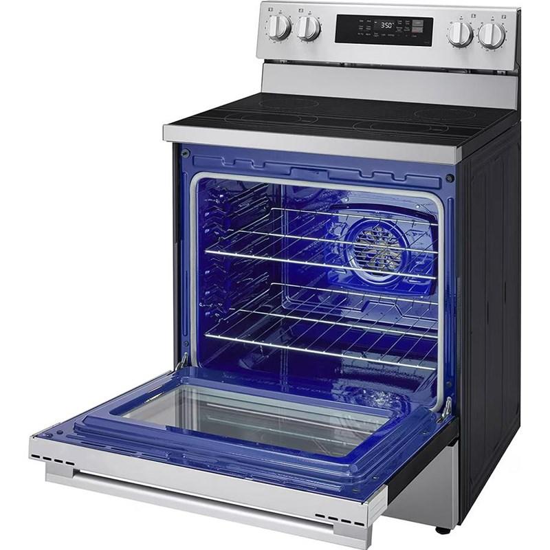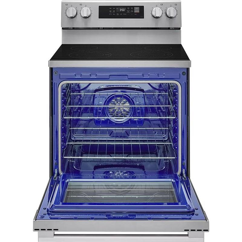 LG 30" Smart Freestanding Electric 6.3 cu ft. Range with Probake Convection and EasyClean®. Whether you’re baking large batches of cookies or a 20-lb turkey and the sides for the holidays, this spacious 6.3 cu. ft. oven can fit it all. LG ProBake Convection® delivers even, precise heat on every rack, every time. Inspired by pro ranges, it’s the first freestanding range with the heating element moved from the bottom of the oven to the back, so your cookies, cakes, roasts and more are perfectly browned every time.