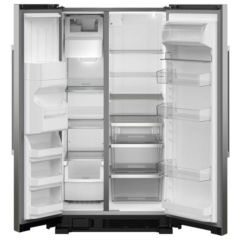 This side-by-side refrigerator is built for large capacity cooling. The gallon door bins maximize space so you can fit even more on the metal shelf and frameless glass shelves. This side-by-side refrigerator with water and ice dispenser gives you easy access to water and ice when you need it. With a 10-year warranty on the compressor, this fridge has performance that lasts.