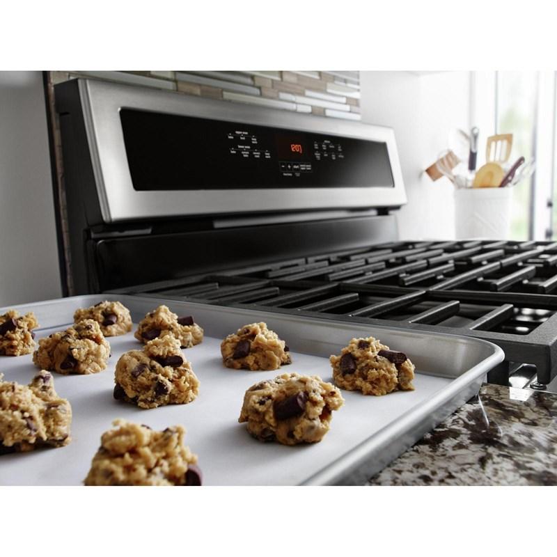 No matter how big the meal, count on this 6.0 total cu. ft. double oven gas stove to get the job done. Power Preheat lets you start cooking sooner, while true convection with a third heating element enables faster baking and roasting. Plus, the Power™ burner brings the heat for quick searing and an even sauté, and the oval burner provides more cooking capabilities with larger pans and griddle plates. Even better, this freestanding oven boasts a 10-year limited parts warranty, is available in fingerprint resistant stainless steel, and is designed, engineered and assembled in the U.S.A. with genuine American Pride.