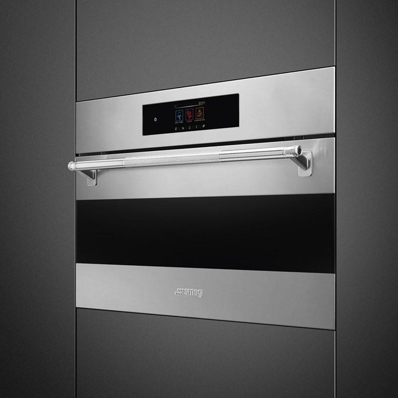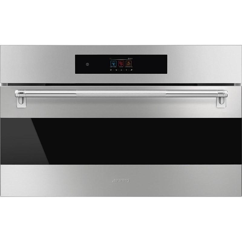 The Smeg 30" built-in Combi-Steam Wall Oven featuring a spacious 2.54 cu. ft. interior. It seamlessly combines convection, microwave, and steam cooking in a single stainless steel unit. With user friendly touch controls, versatile cooking modes, and a self cleaning steam enamel interior, it delivers fast, healthy, and precise results.