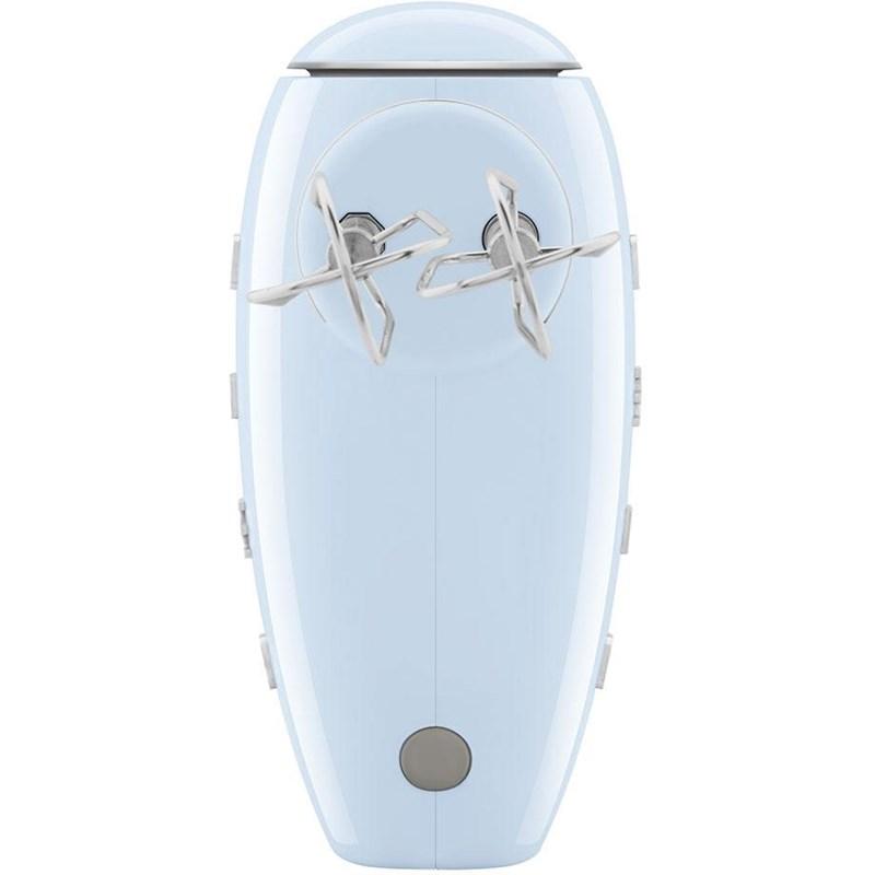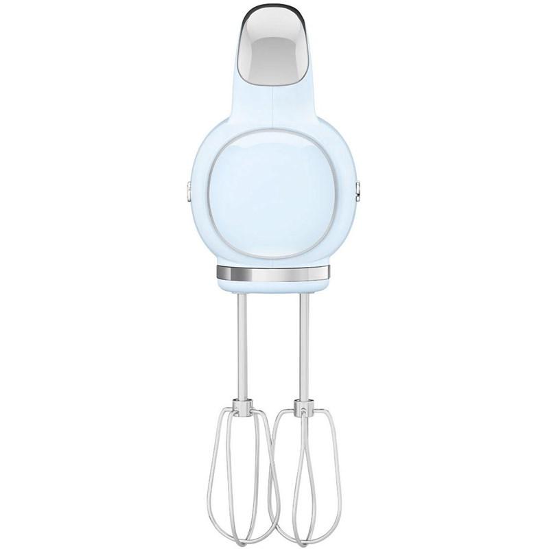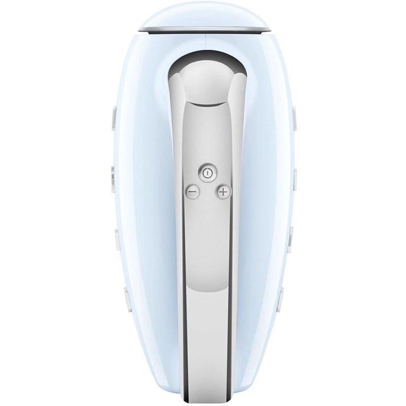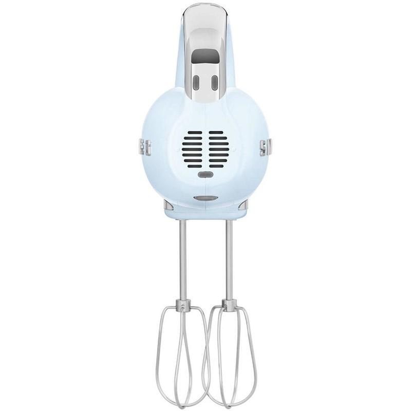 This Smeg 50's retro-style aesthetic hand mixer features a smooth start system, 9 speeds, and a glossy pastel blue finish.