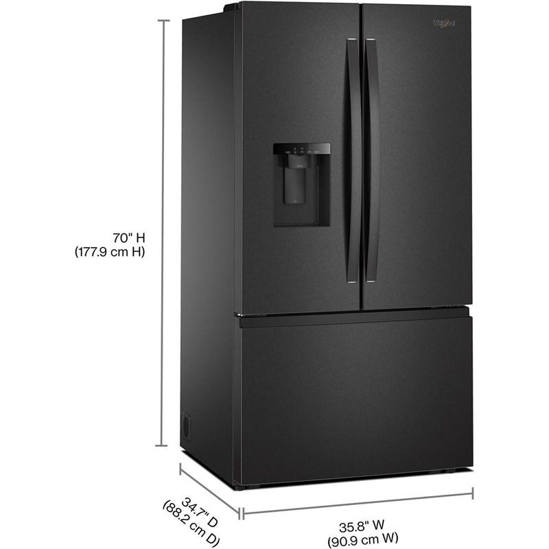 Whirlpool 36-Inch Freestanding 3-Door Refrigerator – 30 cu. ft. Spacious and stylish, this 3-door refrigerator offers 30 cu. ft. of storage, an external water and ice dispenser, and adjustable glass shelves to easily accommodate everything from everyday items to party platters.