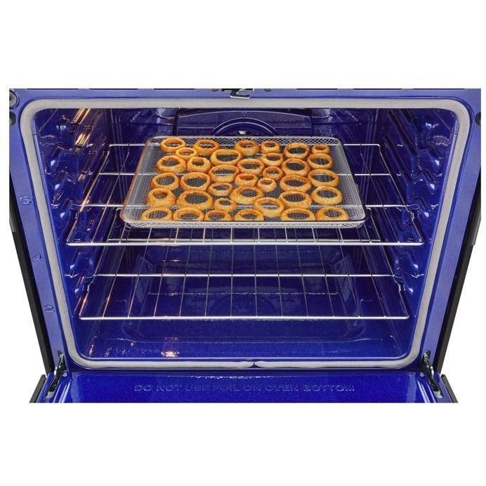 LG 6.3 cu ft. smart wi-fi enabled ProBake Convection® InstaView® electric slide-in range with Air Fry. It features the ThinQ® technology with Proactive customer care, an EasyClean® + self clean oven and a 3-in-1 element.