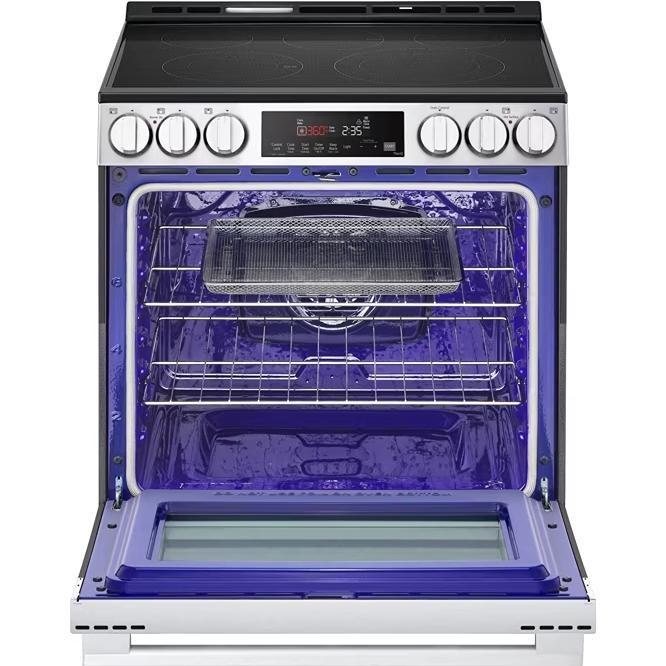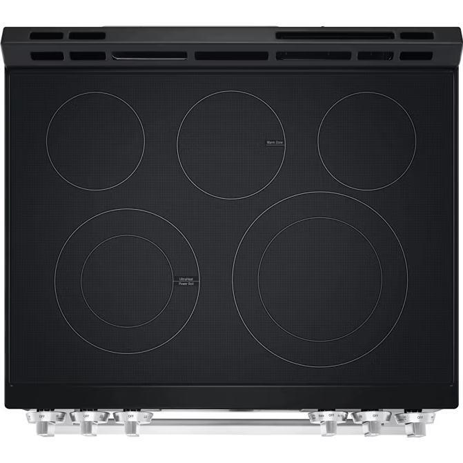 LG 6.3 cu. ft. Smart Wi-Fi Enabled Electric Slide-In Range with Air Fry & EasyClean®. This range has generous capacity so you can cook for one, or cook for all and the 2-in-1 dual elements let you adjust the size to accommodate different sizes of cookware, while the 10-Minute EasyClean® cycle speed clean your oven. Get the ThinQ® app to access smart features and ThinQ Care™ alerts.