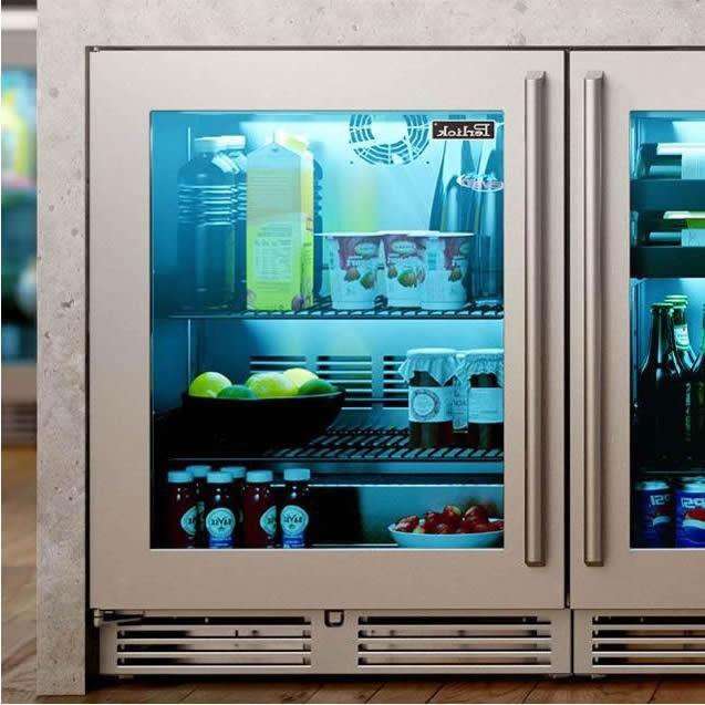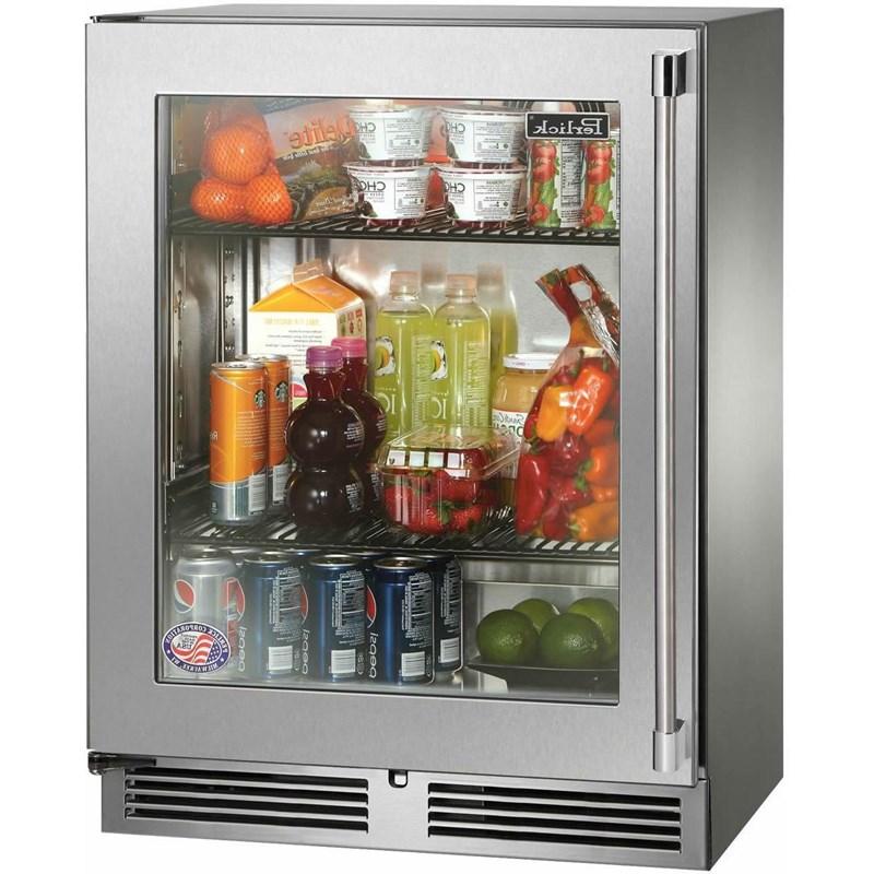 This Perlick's Signature Series indoor shallow depth refrigerator with a panel ready glass door features an overall 18-inch depth for ultimate design flexibility in tight spaces. It offers a storage capacity for up to 68 cans.