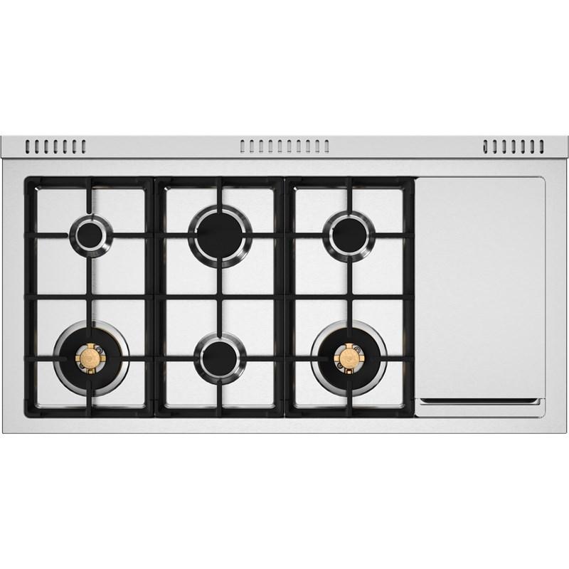 • 6 gas burners with 2 lateral dual wok + elec. griddle