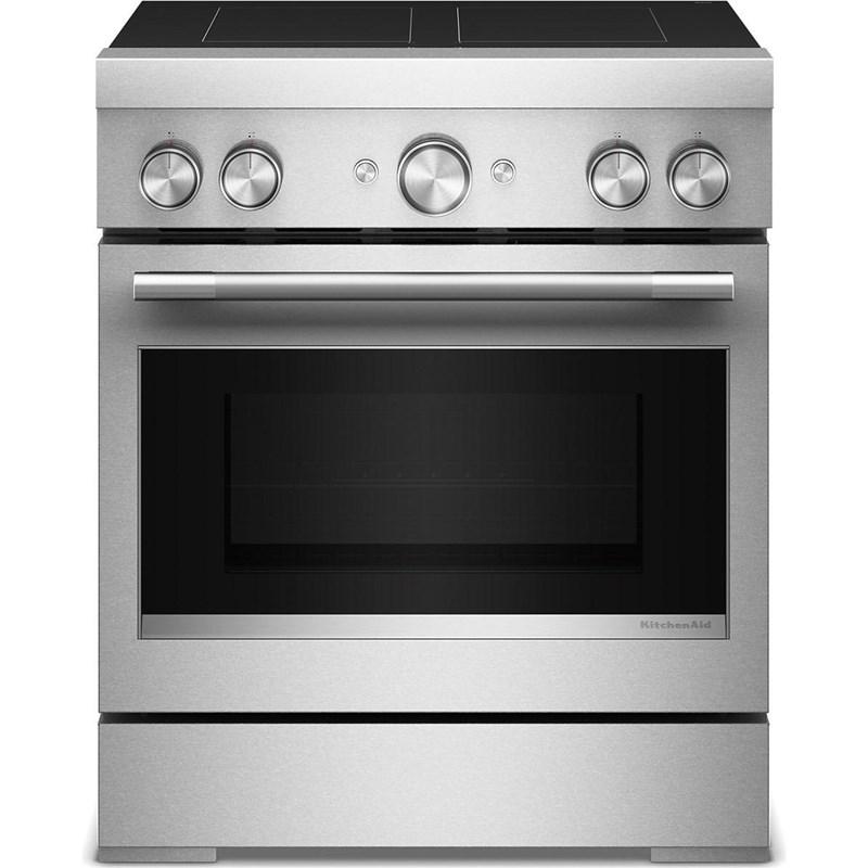 KitchenAid 30-inch induction range with 4 cooktop elements.