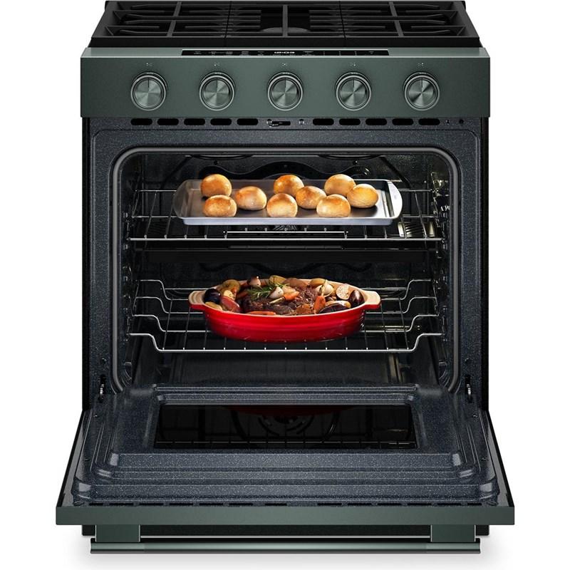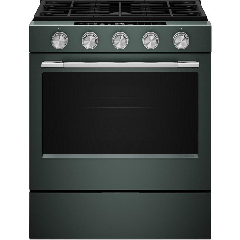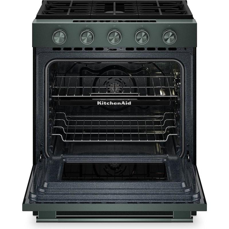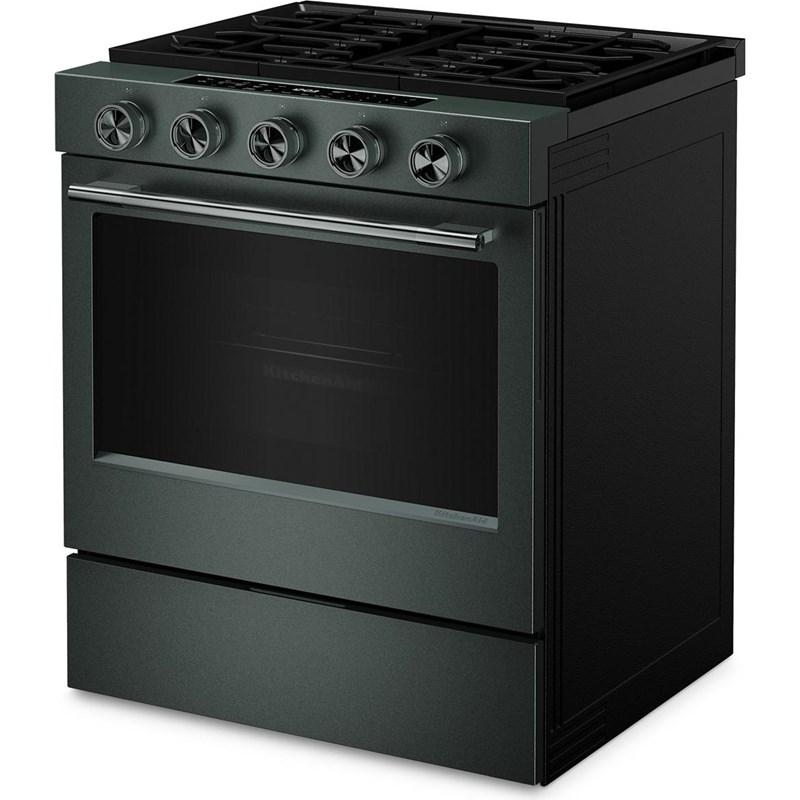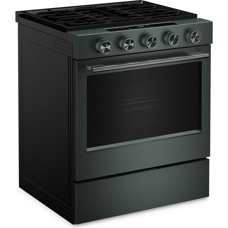KitchenAid 5.0 Cu. Ft. Smart Slide-in Gas Range with Convection Cooking Modes and 2-in-1 Burner. Enjoy a range of possibilities with our most powerful KitchenAid 30-inch Gas Range available, featuring the industry’s most powerful and largest 2-in-1 burner for an unparalleled and versatile cooking experience. Convection Cooking Modes help you get consistent results with optimal temperatures. A Steam Bake mode works with the included steam rack to provide additional moisture during baking, so you can enjoy Basque cheesecake and other delicious desserts. The range is designed to be personalized with a curated palette of exterior finishes and mixed metal hardware. It’s also a Wi-Fi-enabled Smart Appliance model with smart features and mobile app experience.