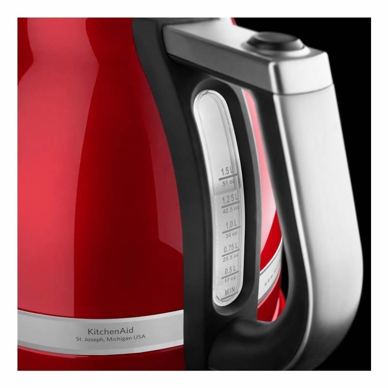 With variable temperature control, the KitchenAid® Pro Line® Series Electric Kettle boils water quietly and quickly at just the temperature you need. The dual wall construction helps keep your water hotter, longer, so there's no need to rush your morning. With convenient features like a water level gauge, removable base, temperature control, soft grip handle and lid release button, this elegant kettle is sure to be part of your everyday routine.