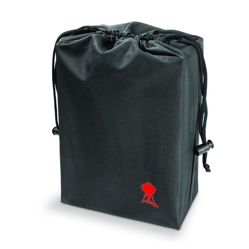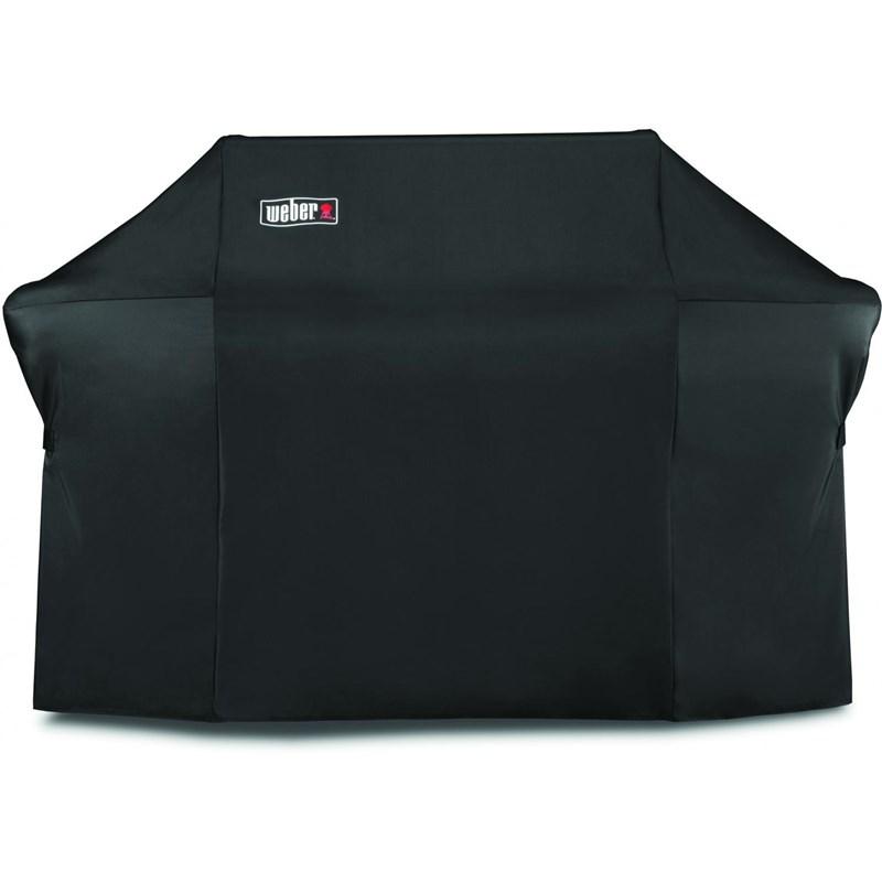 WEBER® premium grill cover made with UV inhibitors in fabric to resist fading, is breathable and water resistant to help prevent grill from the elements and fastening straps keep the cover in place.