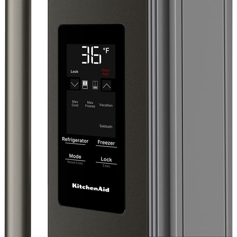 On door exterior put refrigerator functions at your fingertips for quick and easy adjustments to temperature, ice maker, and water filter. Smooth, seamless design is easy to clean.