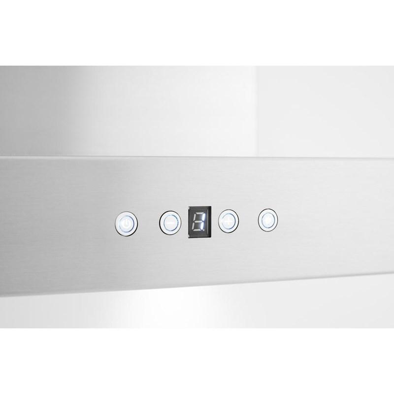 AVG Wyoming 36" wall-mounted range hood for ceiling heights up to 9'. It features a 860 CFM blower with 6 speeds and LED lighting. Includes 2 aluminum superior micro hole filters and stainless steel baffle filters.