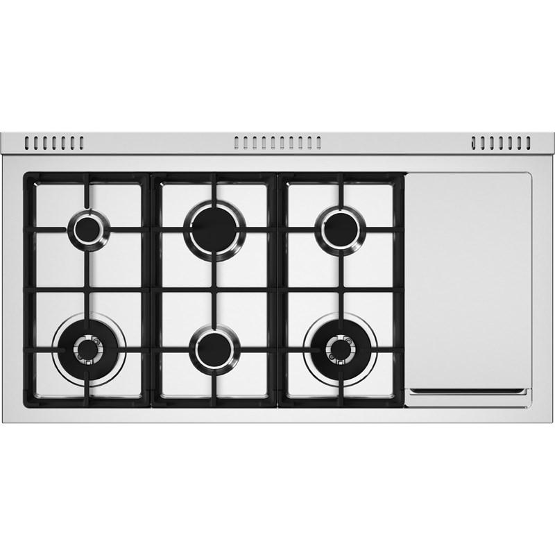 • 6 gas burners with 2 lateral dual wok + elec. griddle