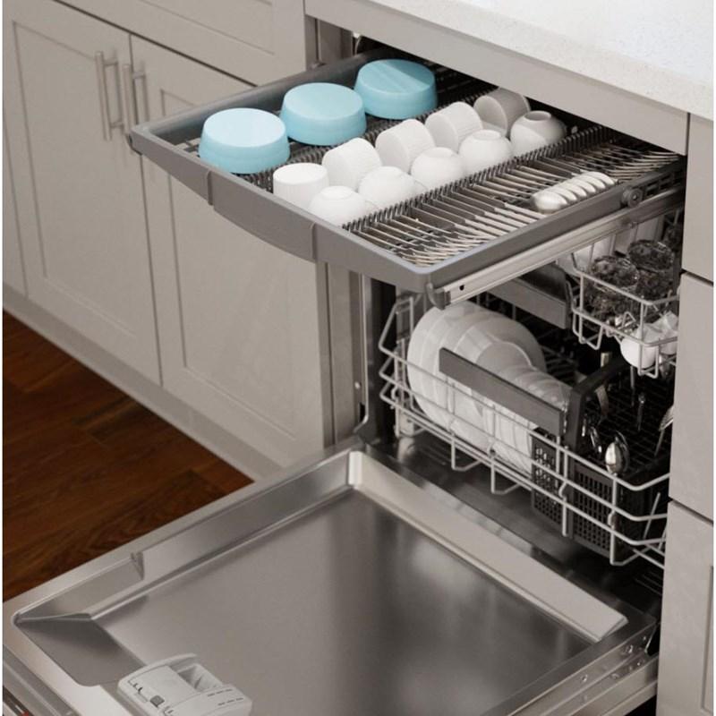 The Standard 3rd Rack provides the perfect space for flatware, large utensils, measuring cups, or nearly anything else that’s difficult to fit in a traditional dishwasher, while its V shape leaves room below both sides for taller items like stemware in the middle rack.