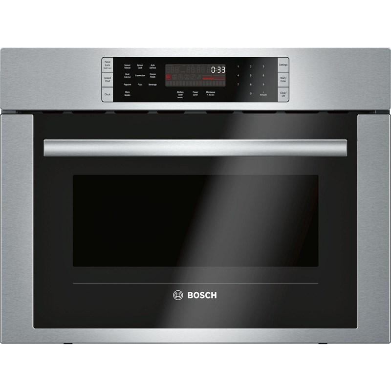 This Bosch 24" 500 Series speed oven features SpeedChef™ cooking, convection technology, 1,000 watts of power and a 1.6 cu.ft. cavity capacity.