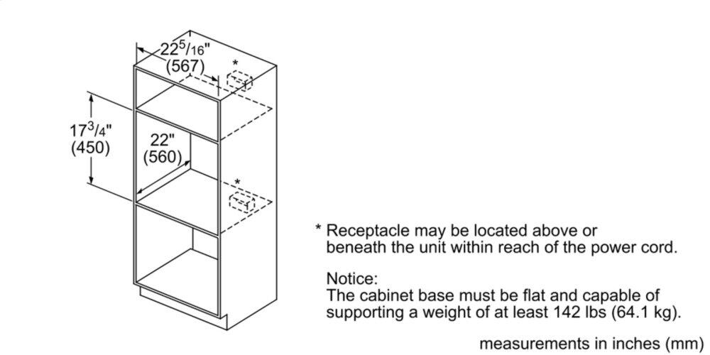 • Required cutout size (HxWxD): (Standard) 17 3/4" x 22 5/16" x 22"