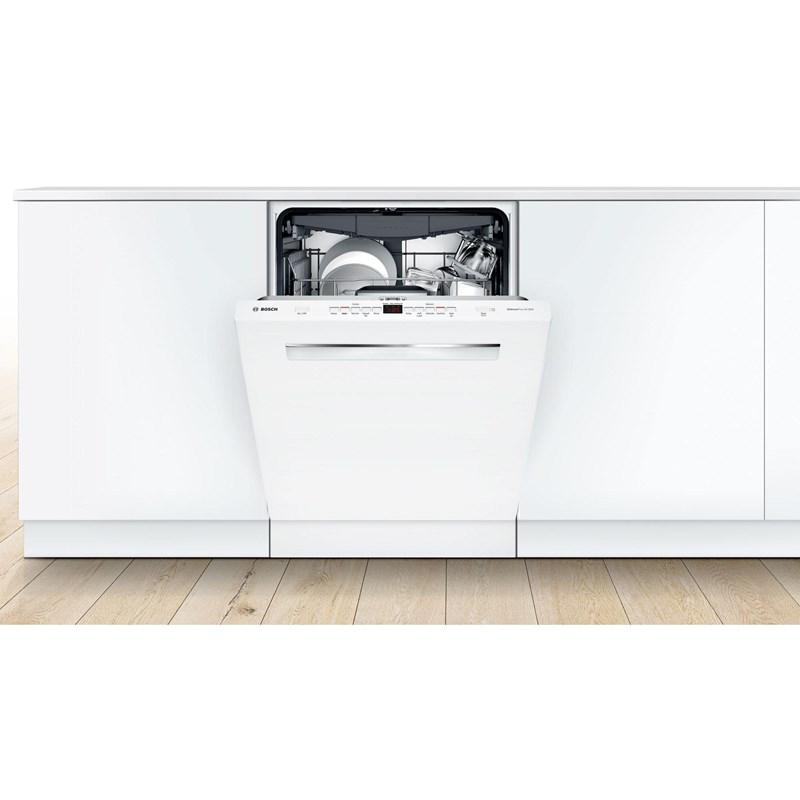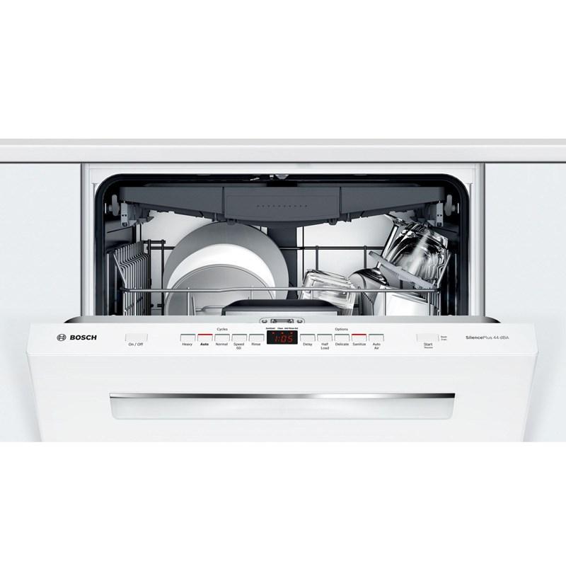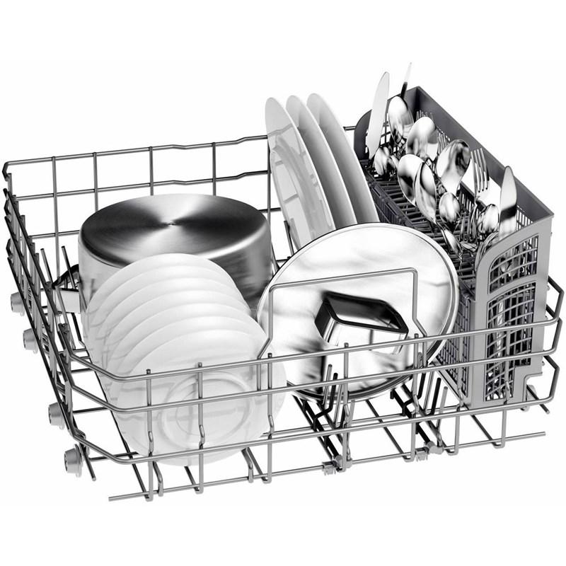 This Bosch 500 Series 24" dishwasher features AutoAir™ option that automatically opens the door at the end of the drying cycle to let fresh air circulate for drier dishes, an EasyGlide™ rack system and FlexSpace™ Tines that fold back to fit your larger pots and pans.