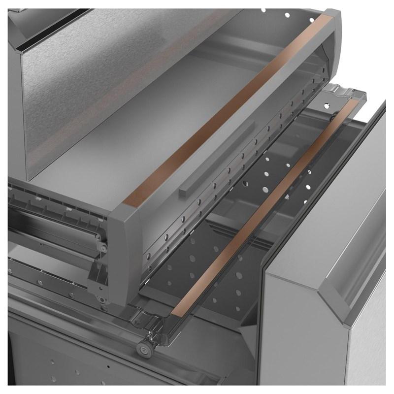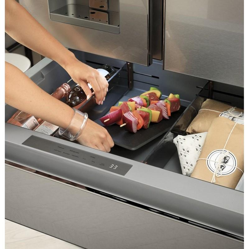 • Fresh Food Cabinet Drawers: 3 Total, 2 Adjustable Humidity Drawers, 1 Full-Width Drawer with Electronic Temperature Control and Colored LED Lighting