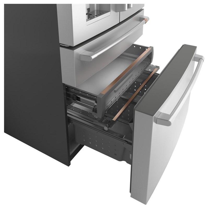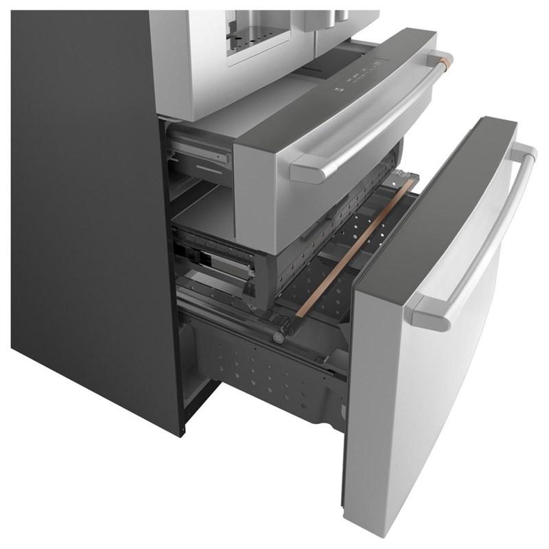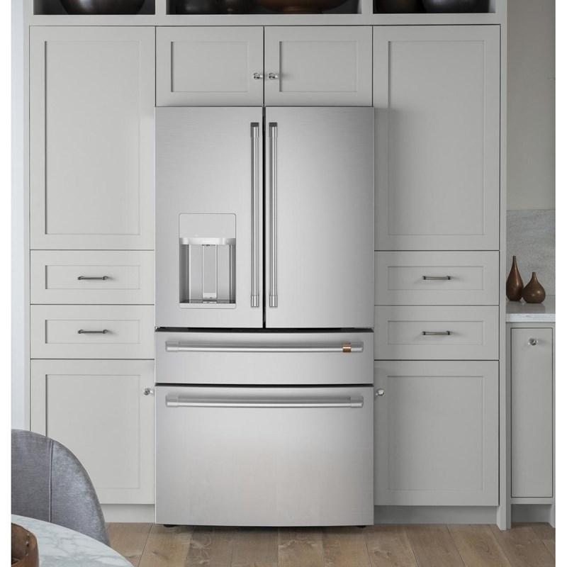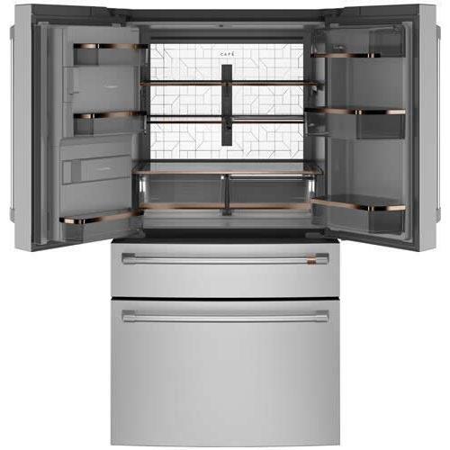 Café™ Energy Star® 27.8 cu. ft. french 4-door refrigerator with easy access, in-the-door icemaker. It features customized temperature settings to suit your needs, the TwinChill™ evaporators temperature system and Wifi connect.