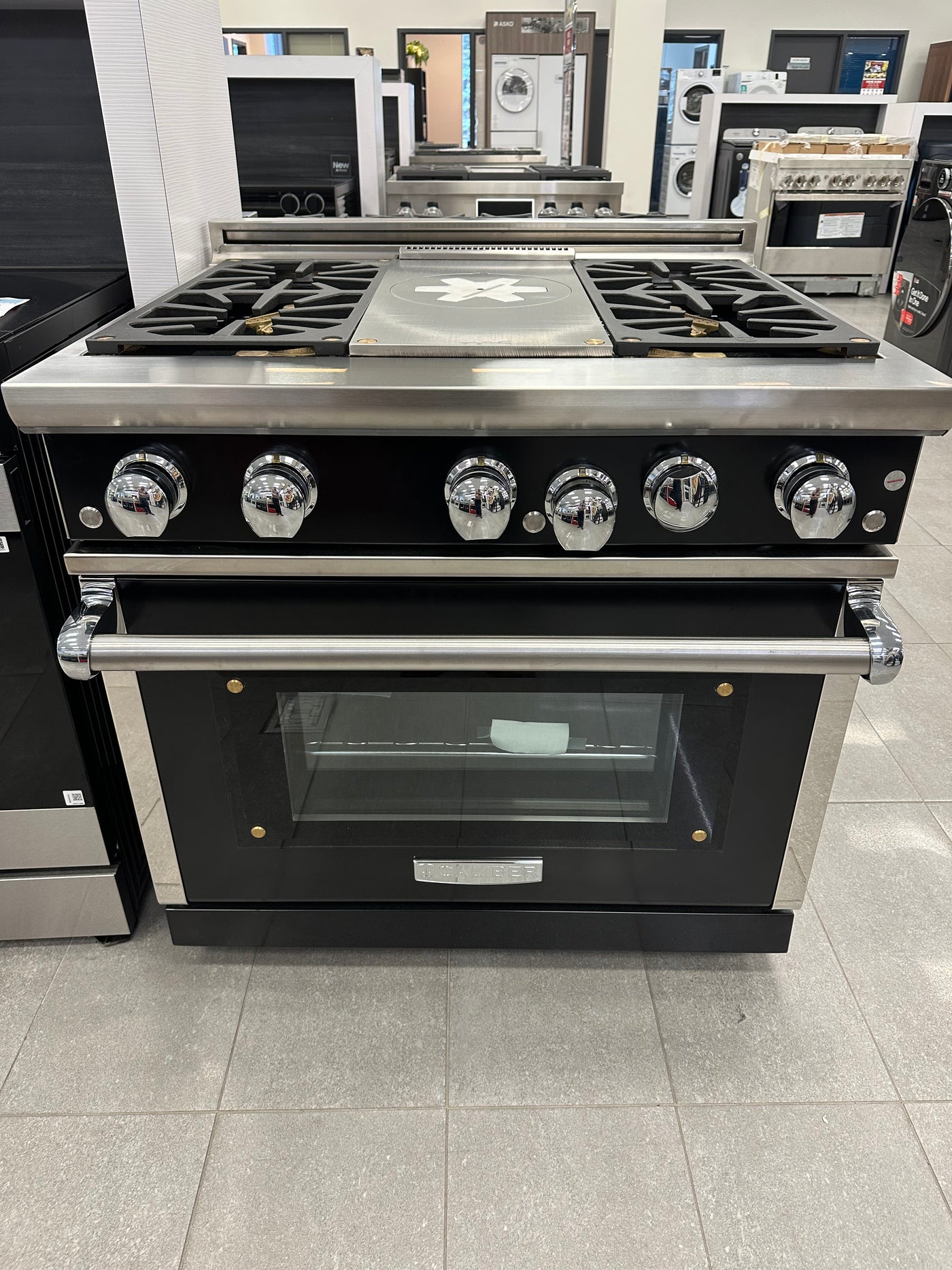 Model: RG364FT – L – Propane Model: RG364FT – N – Natural Gas. 36” Ranges. 4 Gas Burners; French Top; Patent-pending 23,000 BTU to 15,000 BTU solid cast iron