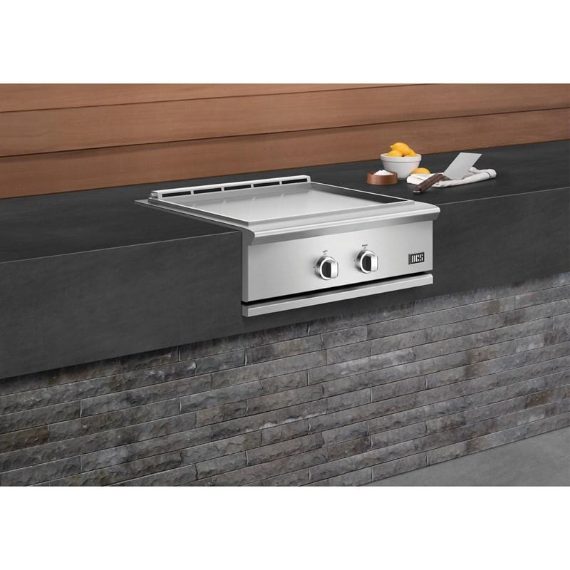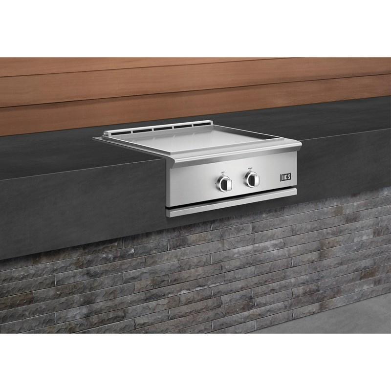 Expand your outdoor kitchen options with quick-cooking on the griddle. The large griddle surface with precise temperature control, separate temperature zones and even heat distribution gives you cooking versatility and the ability to maintain a consistent temperature. Designed with flexibility in mind, this 30" griddle can either be built-in or mounted on a freestanding cart to create the complete outdoor kitchen for your backyard.