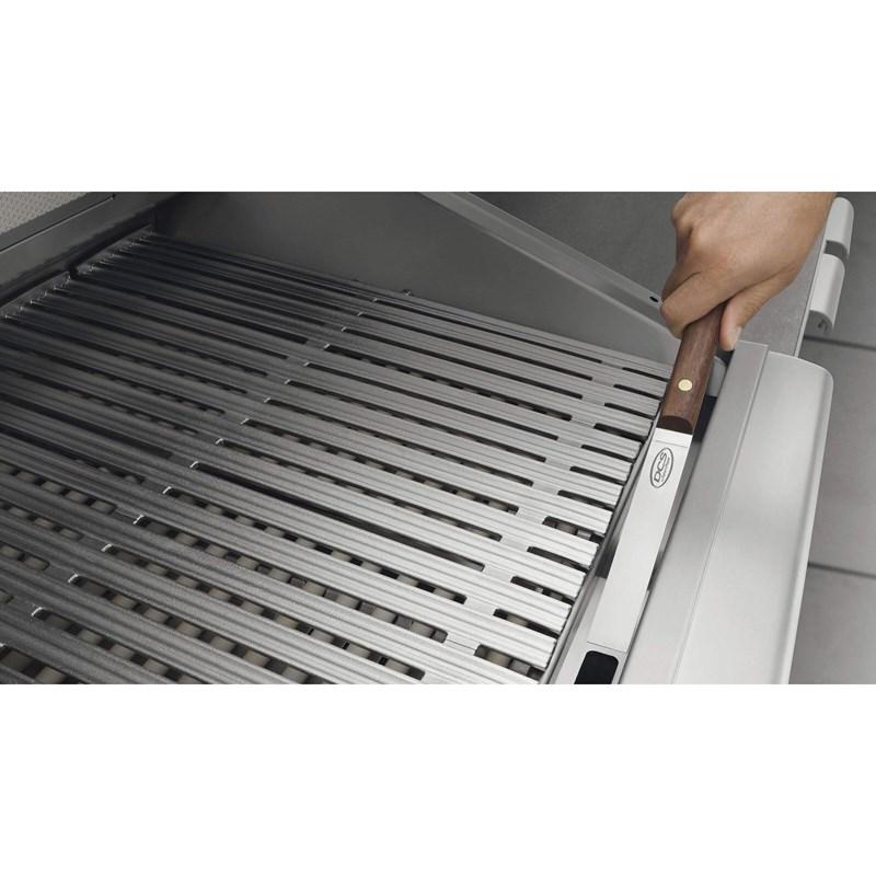 Double Sided Cast Stainless Steel Grilling Grates - deliver perfect sear lines at the same time as channeling away oil to an easily removable capture tray. Grates feature one side with a gentle radius for support and handling, while the other side is W shaped for maximum grease capture, while leaving perfect sear lines.