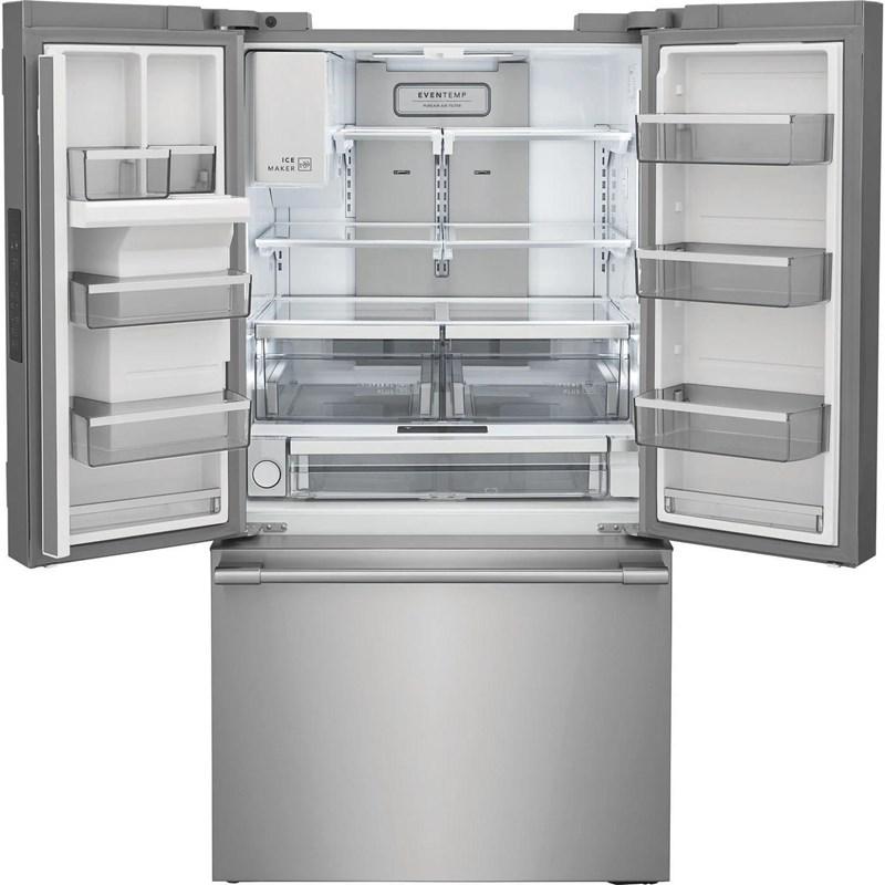 Frigidaire Professional counter-depth french 3-door refrigerator features ice and water dispensing system, automatic defrost, LED lighting and a total capacity of 22.6 cu.ft.