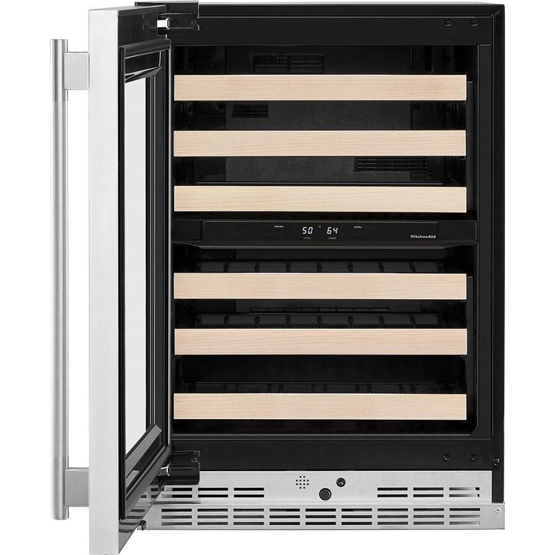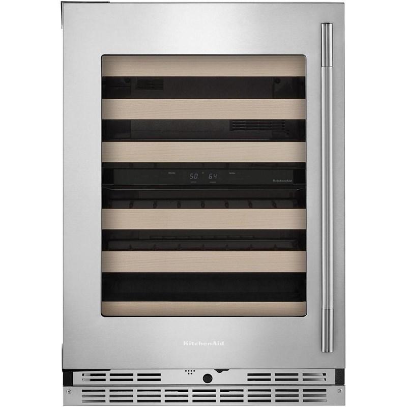 This 24" Undercounter Wine Cellar with Full-Extension Wood-Front Racks stores up to 46 standard Bordeaux-size bottles. Motion-Activated LED Lighting turns on as you approach, making it easy to see what’s inside. Fully Flush Installation with Hidden Hinges provides a built-in look within cabinetry.