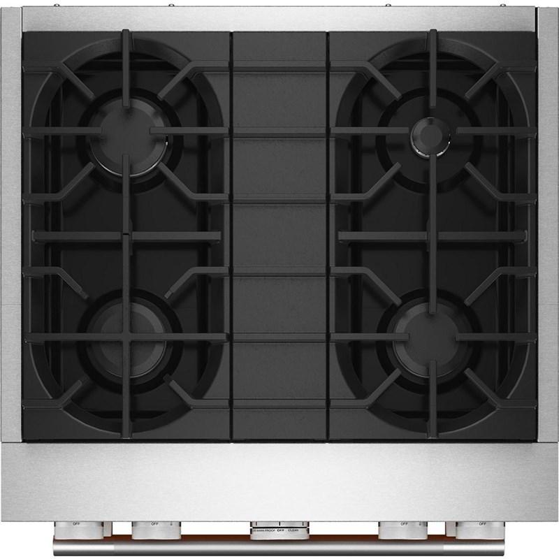 Empower your creativity with a 30-inch KitchenAid® Commercial Style Range with 4 burners. This dual fuel range combines a gas cooktop with the even baking of an electric oven. Two versatile 20,000 BTU Ultra Power™ Dual-Flame Burners offer the power and precision to sear, simmer, stir-fry and sauté. Even-Heat™ True Convection gives consistent baking and roasting, plus air fry mode that yields crispy, golden results.