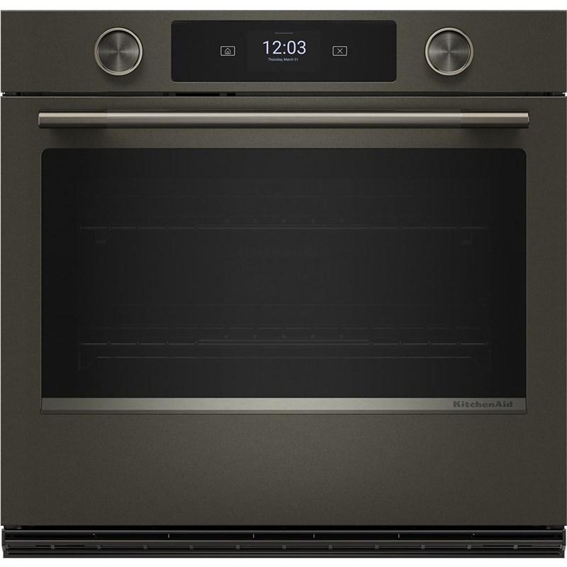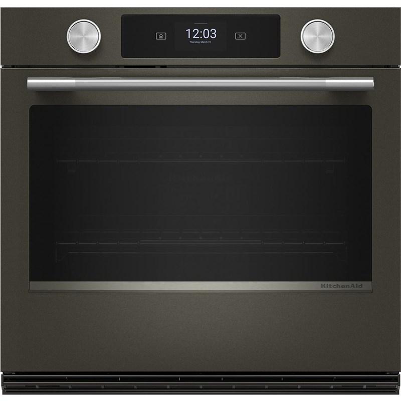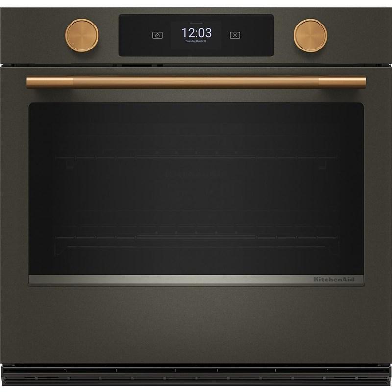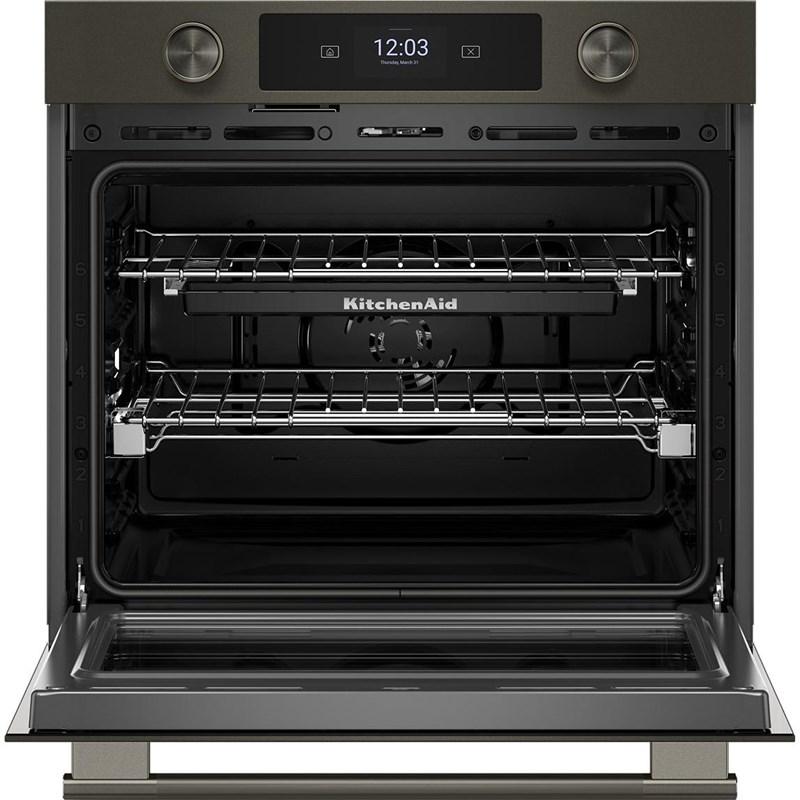 Explore new recipes with built-in tips on this KitchenAid smart wall oven, featuring our Most Precise Even-Heat™ True Convection and Assisted Cooking Modes. LED Touchscreen display and backlit knobs allow for tactile display navigation. The backlit knobs also provide a visual cue throughout the cooking process, illuminating when the oven is preheating and pulsing when cooking is finished. Designed to be personalized, these wall ovens are available in a curated palette of exterior finishes and can be customized with mixed metal hardware.