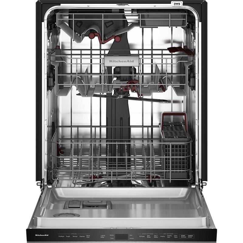 Say hello to the only way to dish. This top control dishwasher with a pocket handle has 50+ Total Wash Jets across 5 wash arms that offer targeted cleaning across the entire 7.25 cu.ft. MaxTub Largest dishwasher Tub*. 360° Max Jets™ Third Rack uses 360° wash jets to clean glasses, mugs and bowls. Advanced ProDry™ System serves up KitchenAid brand's driest dry. True Self-Cleaning Filtration eliminates manual filter cleaning by continuously circulating clean water during wash and rinse cycles.