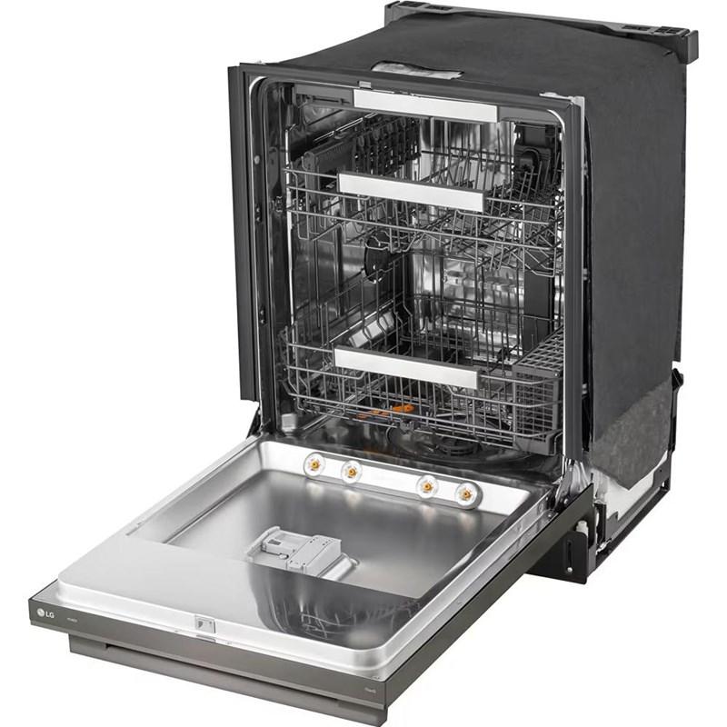 This 24-inch built-in dishwasher features a 1-Hour Wash & Dry Cycle, QuadWash® Pro, Dynamic Heat Dry™ with AutoVent Dry™, ThinQ® Auto Leak Detection, LED Tub Light, and a FlushFit™ Design.