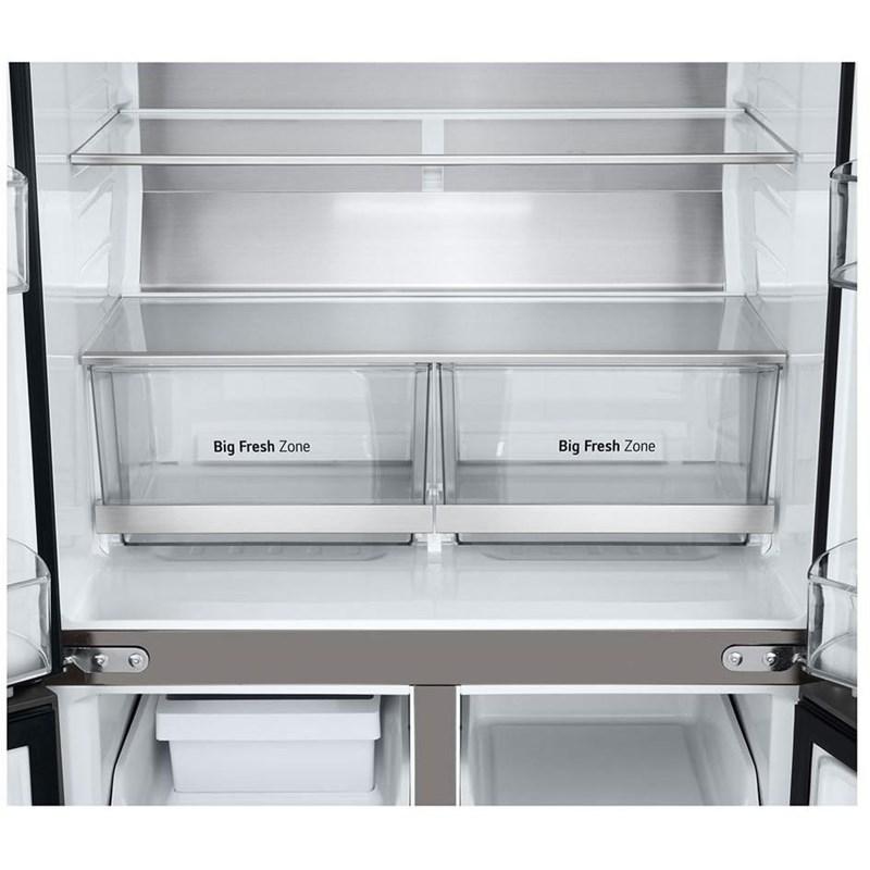 This counter-depth refrigerator features a flat panel door design with pocket handles. It includes a factory-installed automatic ice maker and a Multi-Air Flow system.