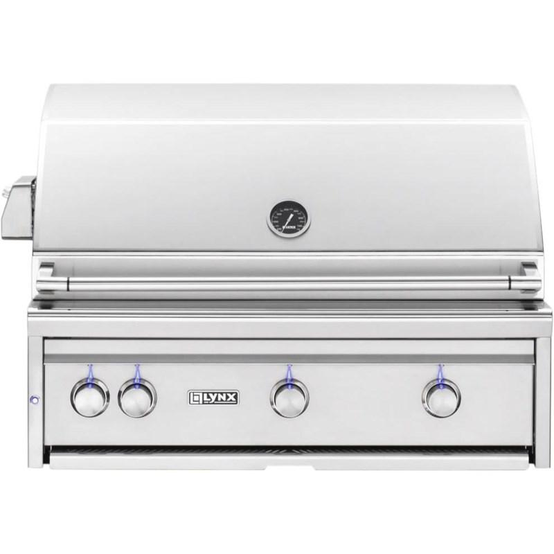 The Lynx is a 36" natural gas Built-in Grill with Trident™ Burner and Rotisserie. It comes with two cast ceramic burners and one Trident™ Burner (73,000 BTUs)