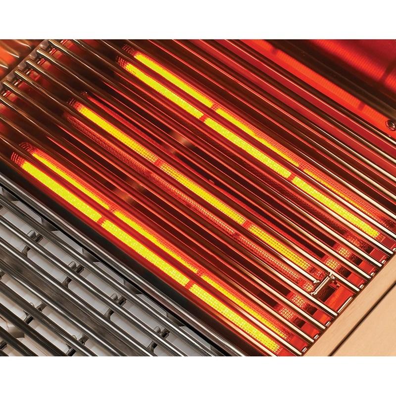 • Dual-position rotisserie with heavy-duty, 3-speed motor and rear infrared burner