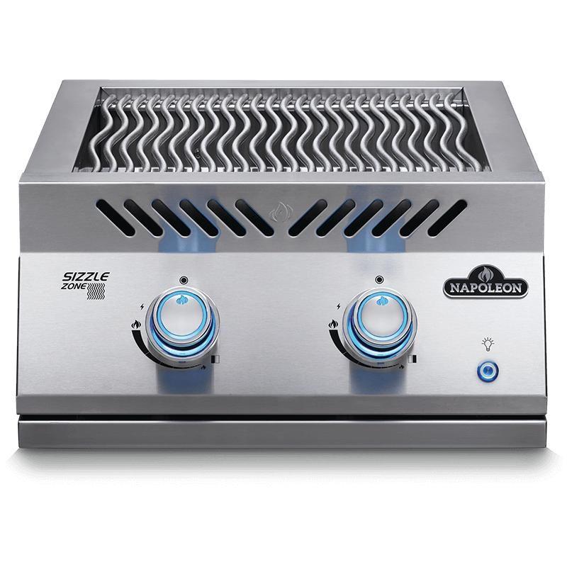 The Infrared SIZZLE ZONE can be used to produce the perfect sear on meat or used to create sides and sauces while the main grill is in use. This 18-inch, dual burner, drop-in Infrared SIZZLE ZONE burner provides loads of space to sear succulent steaks to restaurant-quality perfection. Made from the same quality of marine-grade stainless steel as the 700 Series built-in grills, this drop-in side burner matches your custom outdoor kitchen. These burners provide stylish longevity and were built with ease of install in mind. Virtually maintenance-free 7.5-mm cooking grids deliver the iconic WAVE sear marks that tell your meal was cooked on a Napoleon. Ignite the burners one-handed using the JETFIRE instant ignition system. The ergonomic NIGHTLIGHT control knobs which provide ambiance and safety, glowing a glorious blue and changing to red when burners are in use.