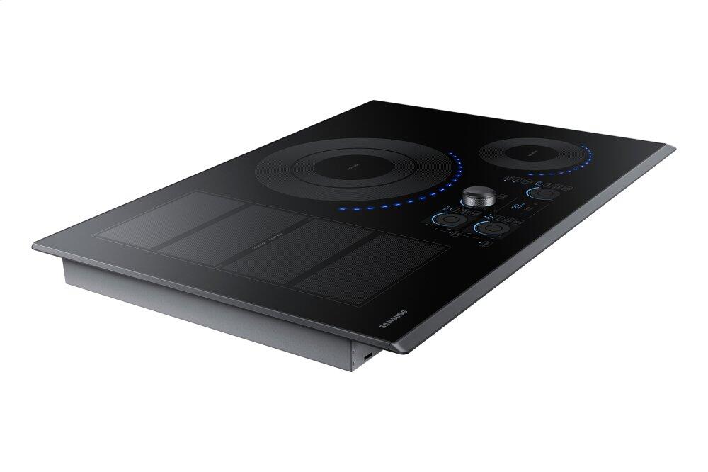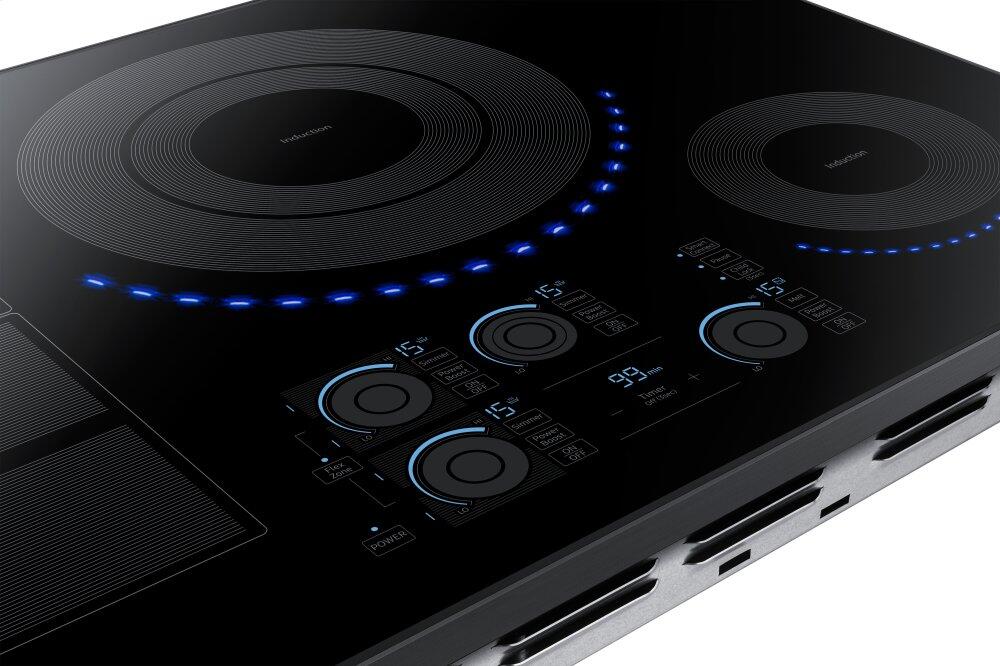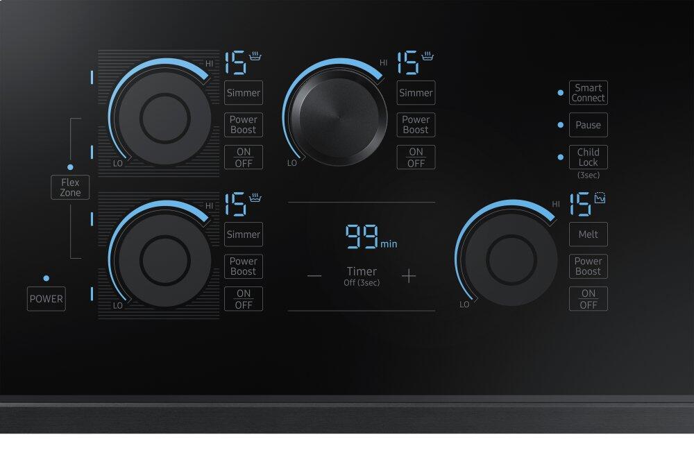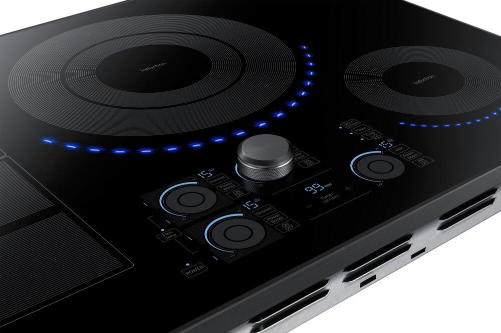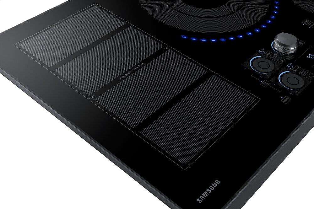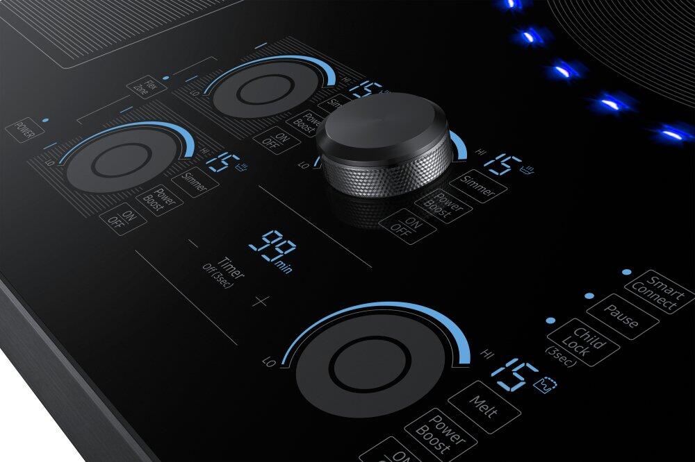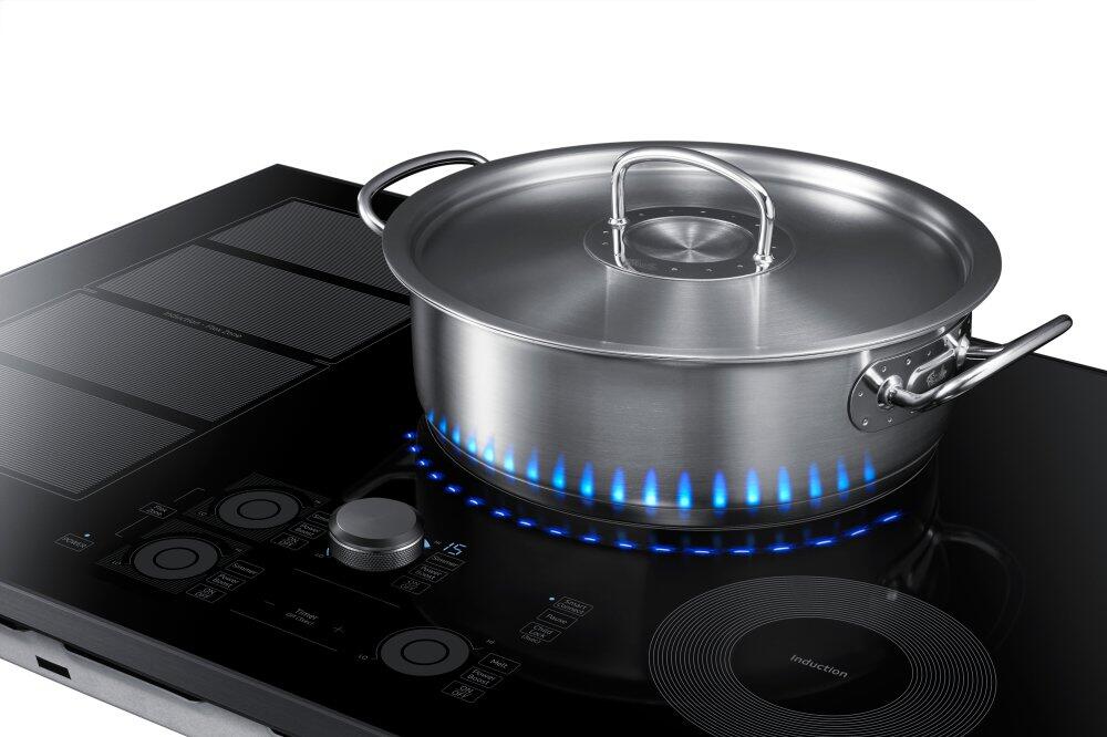 This 30-inch Samsung induction cooktop features Wi-Fi connectivity, 15 power levels plus booster, simmer and melt settings and 5 induction elements. Virtual Flame™ technology consists of LED surface lights that shine onto pans to give the visual of gas cooking, with the precision of induction.