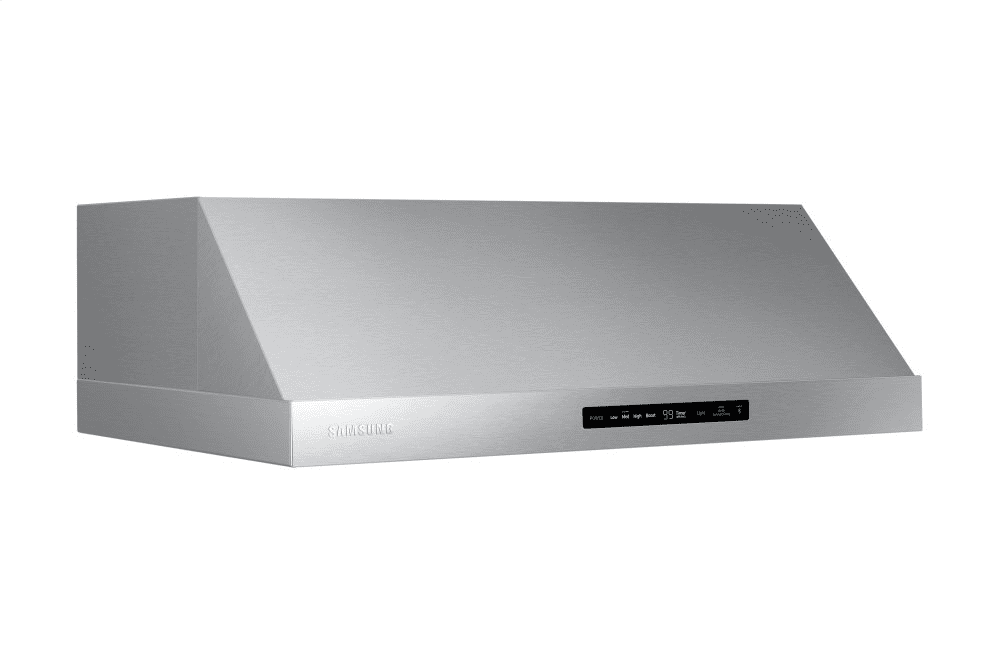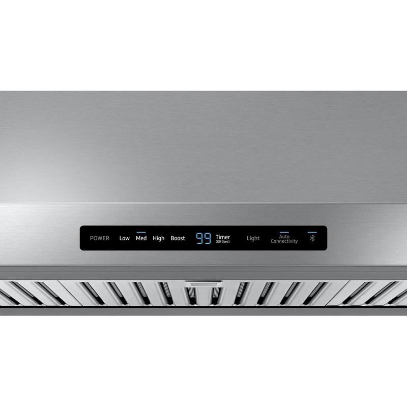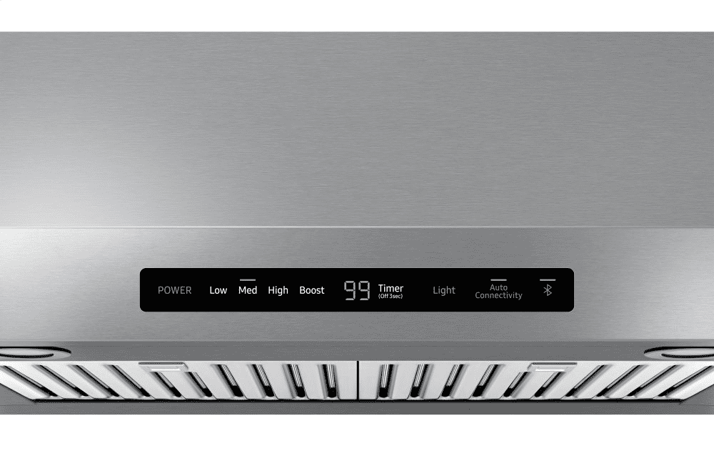 Samsung 30-inch under cabinet hood features Wi-Fi connectivity, Bluetooth connected, LED lighting and 4 fan speeds.
